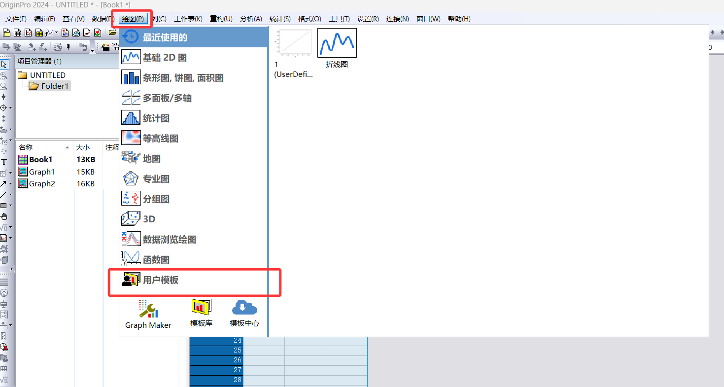 点击菜单栏的“绘图 > 用户模板”;