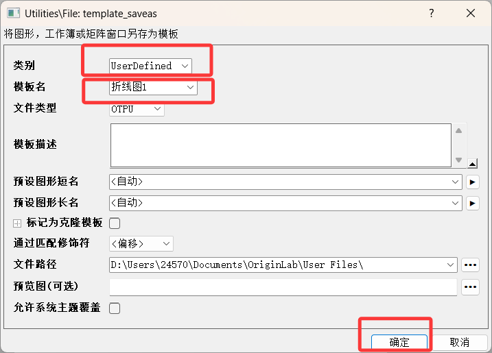 在图形窗口点击“文件 > 保存模板为”;