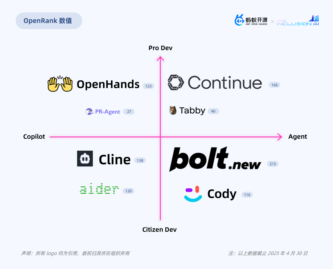 前文中提到,今年以来,全球范围内刮起了一股氛围编程热潮,其甚至成为当代的软件开发新范式。在调研了无数火热的 AI 开发类闭源产品,并观察了多个流行的开源项目之后,蚂蚁开源团队发现: