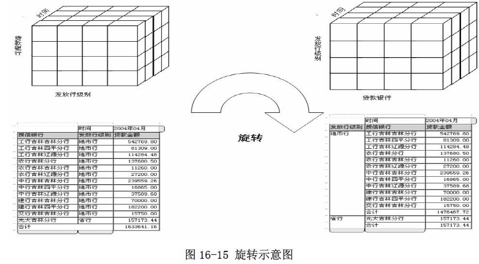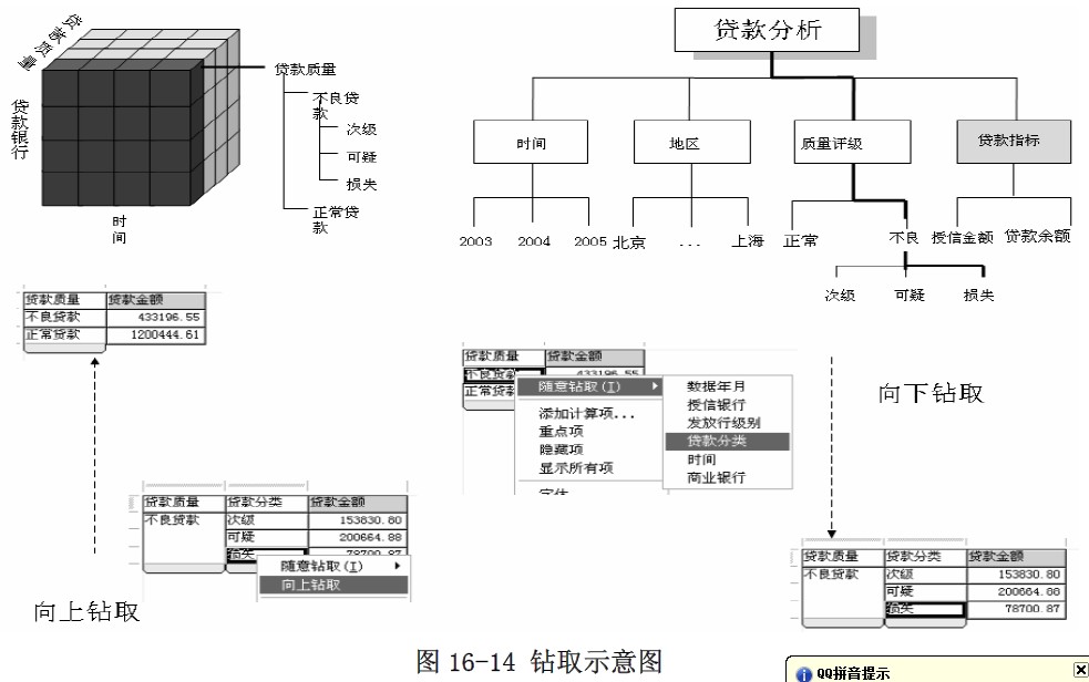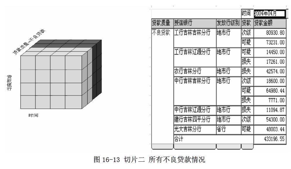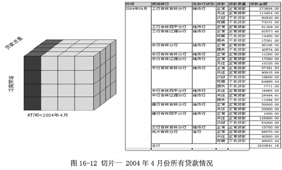 款银行、贷款质量、时间”三维立方体中进行切块和切片,可得到各贷款银行、各种贷款的