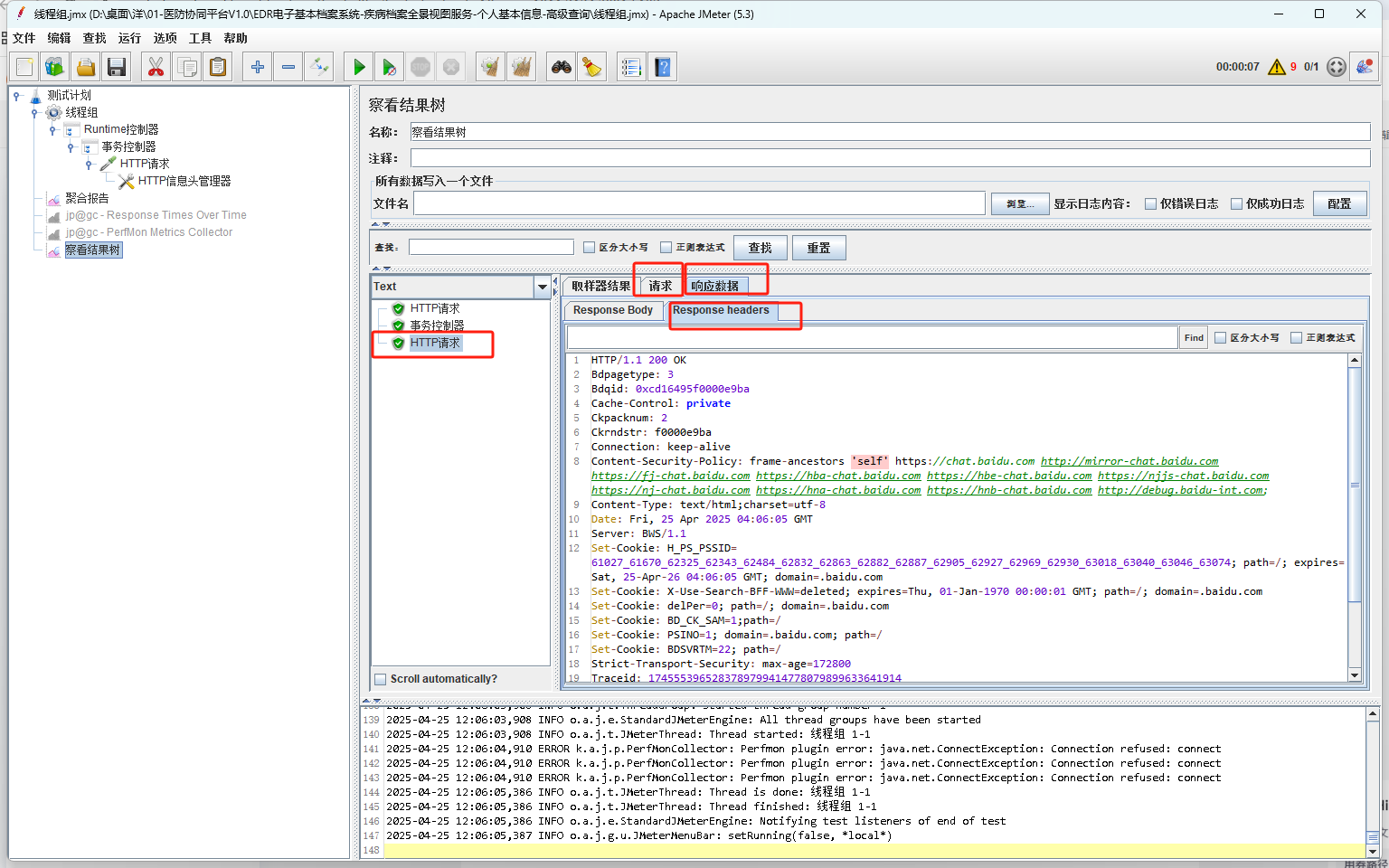 在察看结果树中,可以清晰地看到每个请求的具体情况。在 “请求” 部分,可以查看编写的 http 请求内容;在 “响应数据” 部分,可以看到服务器返回的结果,常见的返回值有 200(表示请求成功)、500(服务器内部错误)、501(未实现的功能)等。如果返回值为 200,通常表示脚本编写正确,请求成功执行。