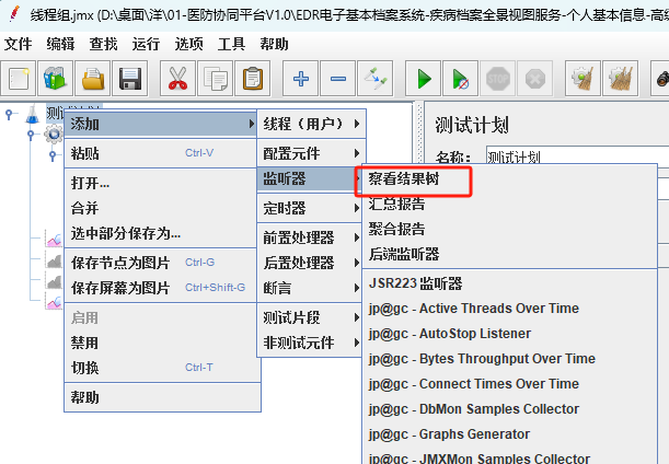 察看结果树的添加位置在测试计划 → 监听器下,操作路径为:测试计划 → 添加 → 监听器 → 察看结果树。