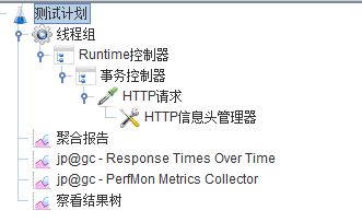 在使用 Jmeter 进行性能效率测试时,通常主要需要添加以下组件:测试计划、线程组、Runtime 控制器、事务控制器、HTTP 请求、HTTP 信息头管理器、聚合报告、jp@gc-Response Times Over Time、jp@gc-PerfMon Metrics Collector、察看结果树。下面将详细介绍这些组件。