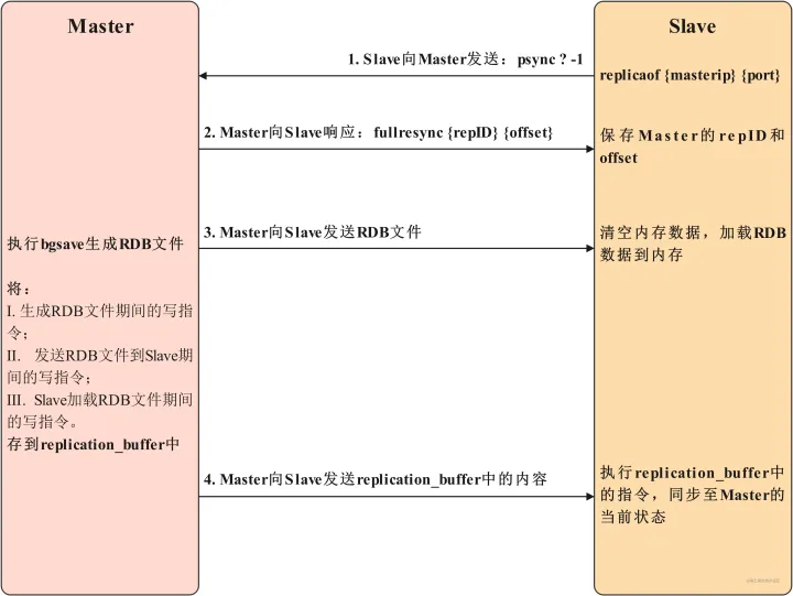 从节点与主节点建立连接时的全量同步可以用下图进行示意。