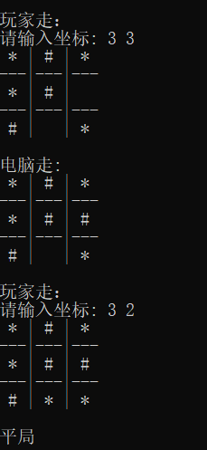 C语言基础:三子棋 一、总体思路1.菜单界面选择开始或者退出游戏2.创建棋盘并初始化3.打印棋盘4.玩家落子5.判定胜负(输,赢,平局)6.电脑落子(随机位置落子)7.判定胜负二、程序设计1、菜单设计开始游戏 1 退出游戏 0效果展示2、创建棋盘并初始化棋盘创建棋盘由3行3列的二维数组表示,类型为char使用宏定义的原因:便于将来修改棋盘尺寸棋盘初始化用‘ ’表示棋盘空白区域3、打印棋盘效果展示:......