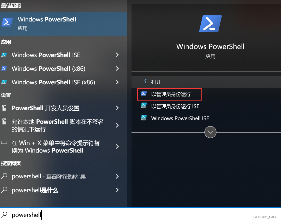 以管理员身份运行PowerShell