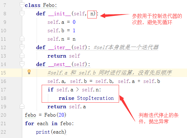 上述迭代器如果不加限制的话,会无限迭代下去,改进代码如下:
