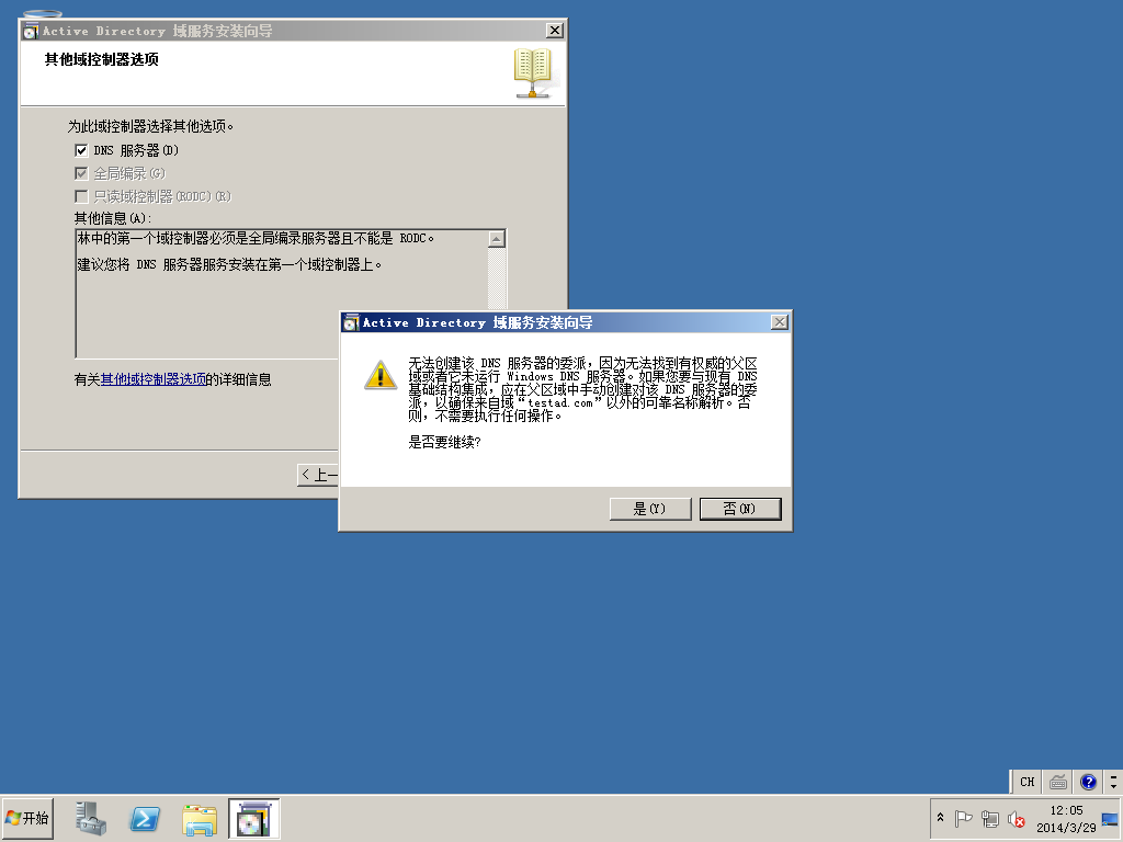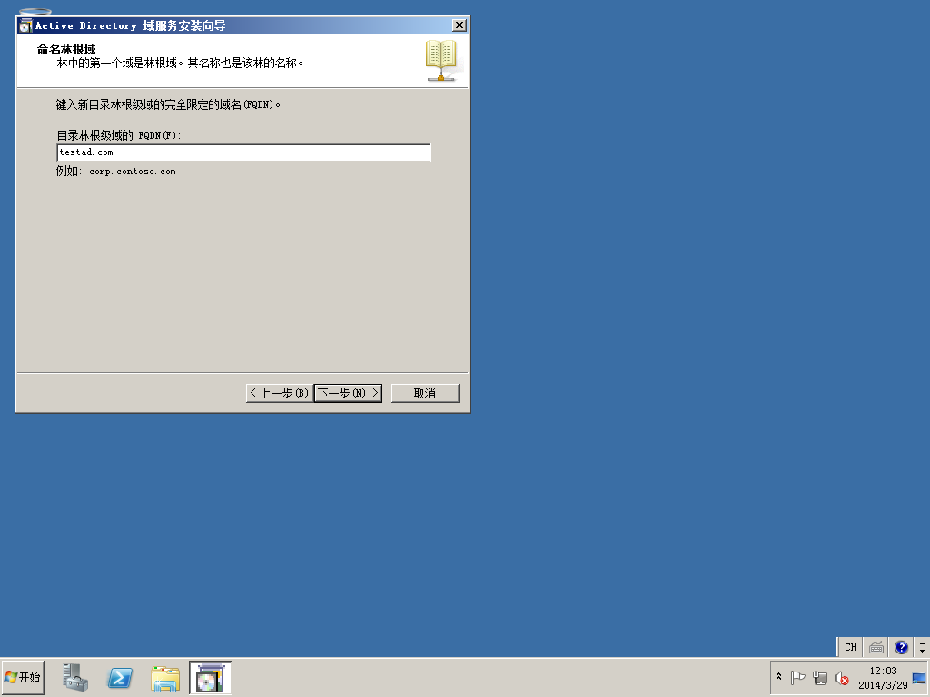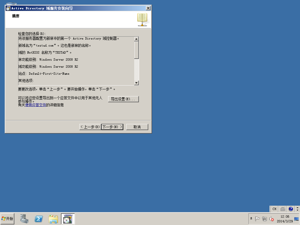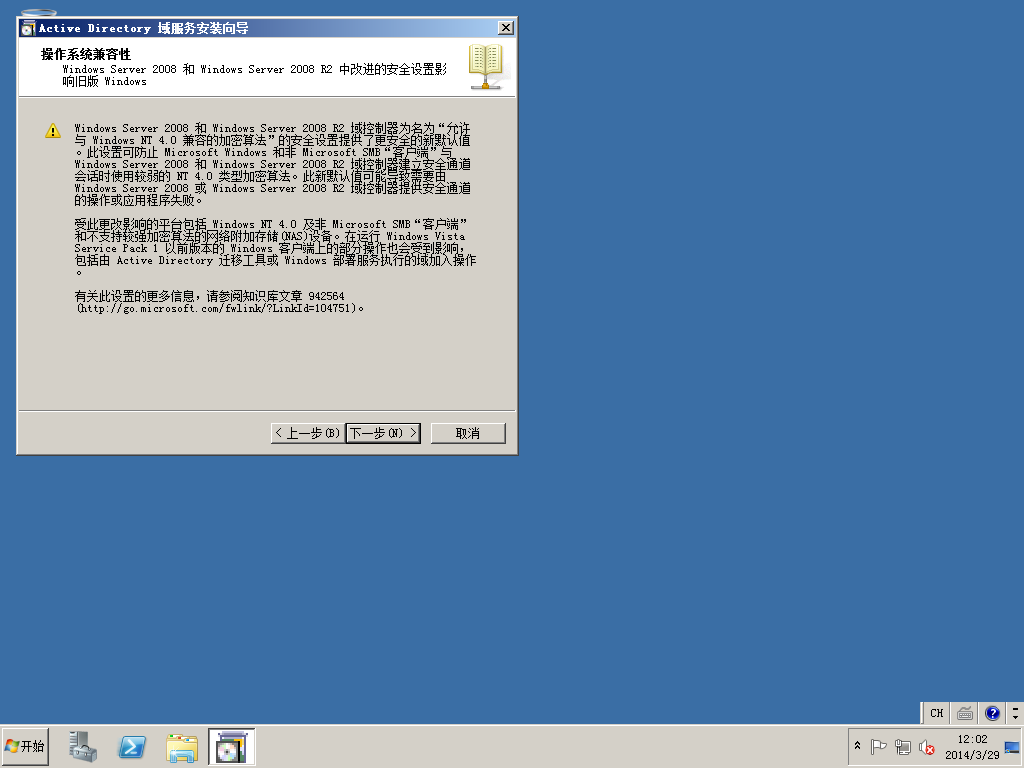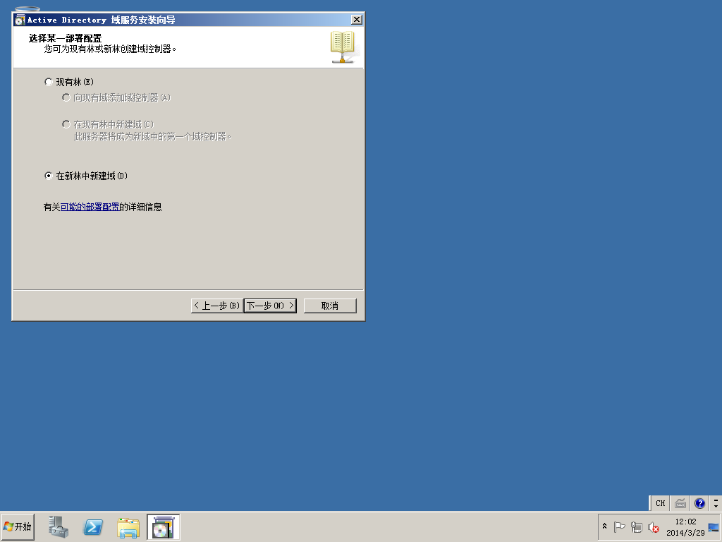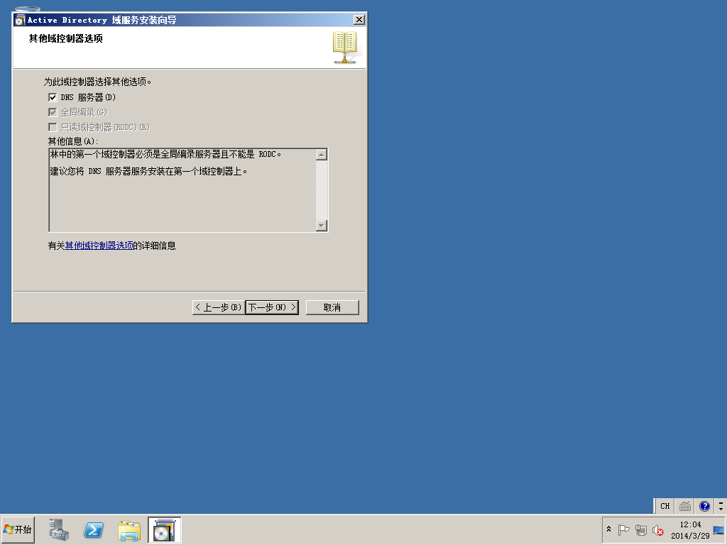 3)开始菜单->运行中输入DCPROMO,开始活动目录的安装