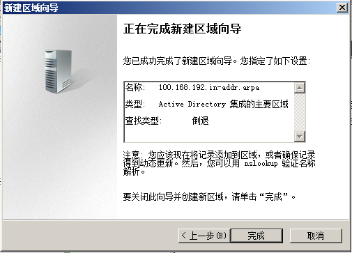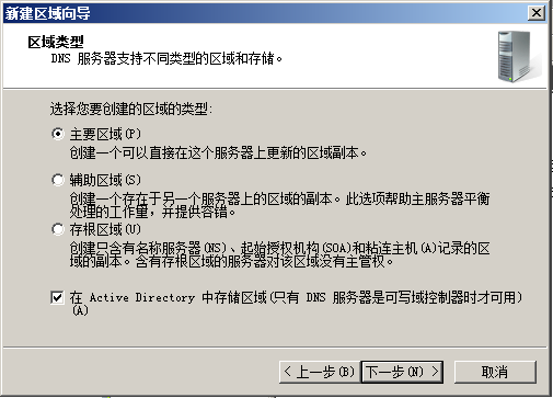 选择主要区域,连续默认下一步,完成DNS配置。