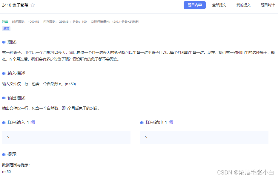 2024年寒假算法班集训day03-知识总结及题解(递推) 这个问题可以通过递推的方式解决,因为对于一个2xN的墙面,我们可以选择放置一个2x1的瓷砖在最左边,剩下的部分就变成了一个2x(N-1)的问题;其中,a[i]表示铺满2xN墙面的方法数,a[i-1]和a[i-2]分别表示铺满2x(N-1)和2x(N-2)墙面的方法数。初始化条件是a[1] = 1和a[2] = 2,即一个2x1的墙面有1种铺法,2x2的墙面有2种铺法。递推算法,又称为迭代算法,它的基本思想是将问题分解成一系列相似的子问题,通过解决较简单的子问题,逐步求解原问题。具体来说,我们使用一个数组。