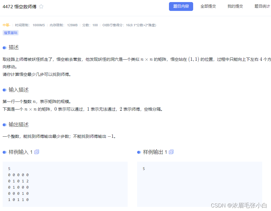 2024年寒假算法班集训day10-知识总结及题解(广度优先搜索) 同理,BFS从一个起点开始,先访问所有的近邻节点,然后再逐步移动到更远的节点。这个问题是一个典型的广度优先搜索(BFS)问题,在一个给定的 ( n \times n ) 矩阵上,需要找到从起点 (1,1) 到达终点(师傅的位置,标记为2)的最短路径。函数从起始楼层开始搜索,通过循环检查每个楼层可以到达的楼层,如果到达的楼层为目标楼层,则输出步数并返回。使用一个循环来不断从队列中取出元素,对每个元素尝试三种不同的移动方式,并更新新的位置和步数,如果新的位置有效且未被访问过,则将其加入队列。