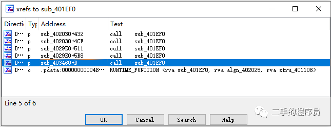 一共有5个地方使用,都加上断点,调试器启动程序进程,随便输入一个字符串“111”,看看哪里会触发到。