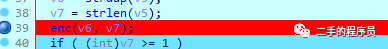 可以看到,v6 是我们输入的数据。根据伪代码分析,v7 是 v6 的长度。由于 enc 函数没有返回值,所以应该是对 v6 做了更改。