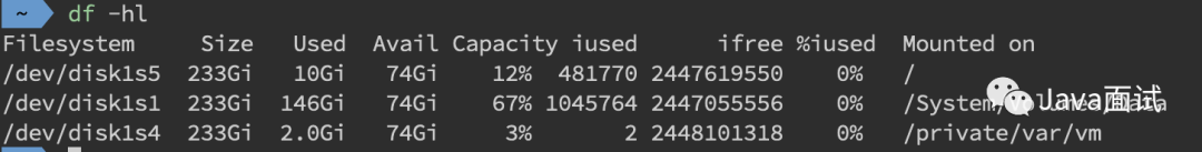 磁盘问题和cpu一样是属于比较基础的。首先是磁盘空间方面,我们直接使用df -hl