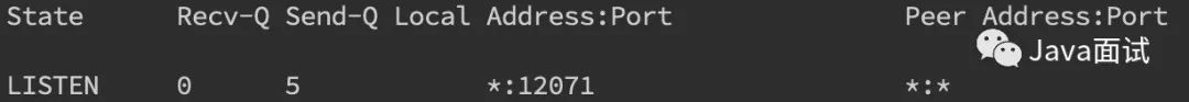 ss命令,执行ss -lnt上面看到Send-Q 表示第三列的listen端口上的全连接队列最大为5,第一列Recv-Q为全连接队列当前使用了多少。