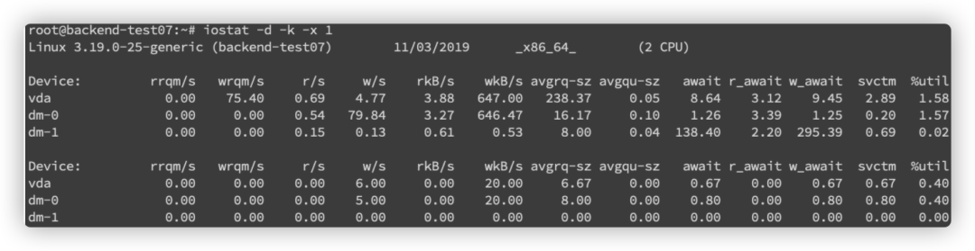 更多时候,磁盘问题还是性能上的问题。我们可以通过iostatiostat -d -k -x