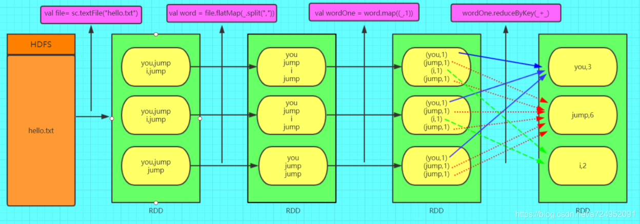 关于spark 的计算 下面这个word count 的demo图应该都见过太多次了