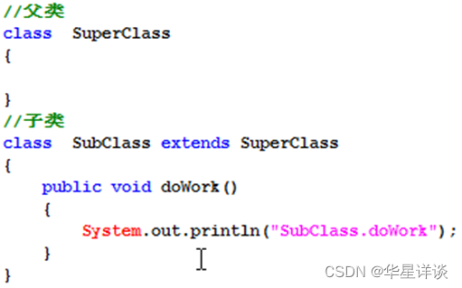 一般的情况下,我们在开发工程中先编写多个自定义类,写完之后发现多个类之间存在共同的代码,此时可以抽去出一个父类。在Java开发中都是基于框架/组件来进行开发的,我们是在别人的基础之上继续做开发。好比别人提供毛坯房,我们只需要在毛坯房的基础之上装修,就可以使用。若要对框架中的方法或者类进行修改,一般的是义新的类去继承于框架中/组件中提供的父类。