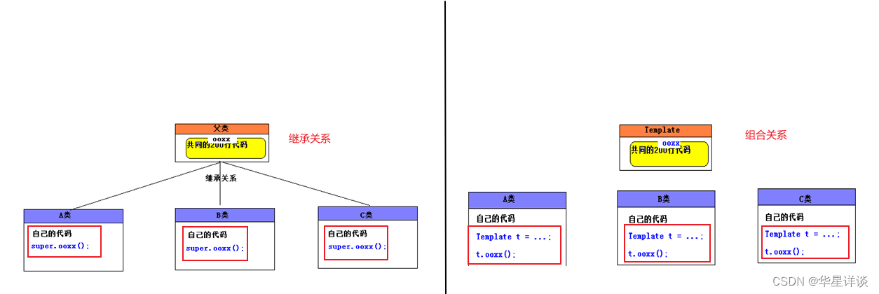继承关系和组合关系在代码中的具体结构如下图所示