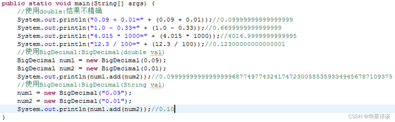 2)、BigDecimal:float和double都不能表示精确的小数,此时得使用BigDecimal,用于处理金钱和精度要求高的数据。
