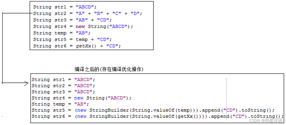 5)通过变量/调用方法去连接字符串,都只能在运行时期才能确定变量的值和方法的返回值,不存在编译优化操作;