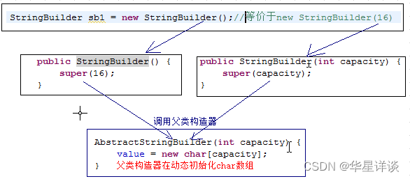 使用StringBuilder无参数的构造器,在底层创建了一个长度为16的char数组