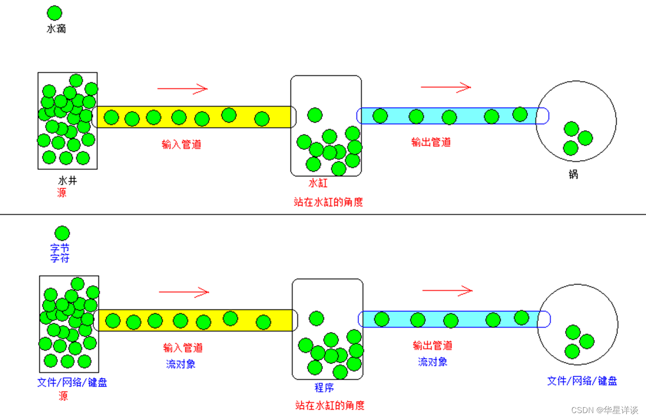 IO操作的示意图:我们可以把IO的操作和生活中的水流联系起来。