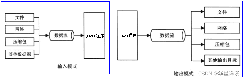 IO操作是一个相对的过程,一般的我们在程序角度来思考(程序的内存)。程序需要数据,即把数据流入到程序中(输入);程序需要保存数据,把数据传递给别人(输出)。