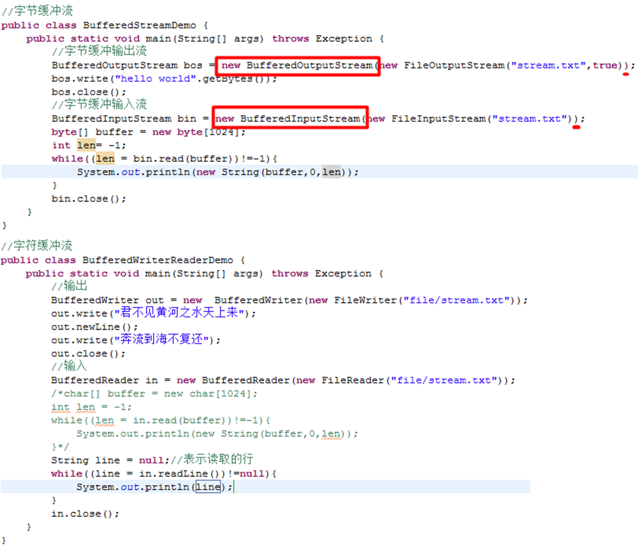 操作字节和字符流都习惯使用缓冲流给包装起来,来提供IO性能/效率。