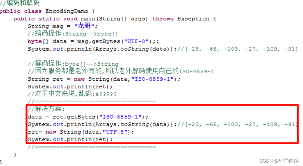 注意:一定要保证编码和解码的字符相同,否则会出现乱码。