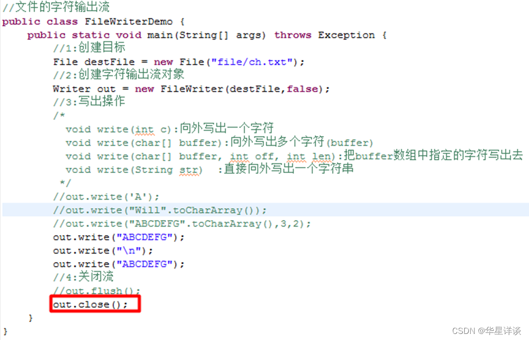 对于字节流,flush方法不是都有作用(部分字节流才有作用),对于字符流都起作用;如果我们调用close方法,系统在关闭资源前,会先调用flush方法。