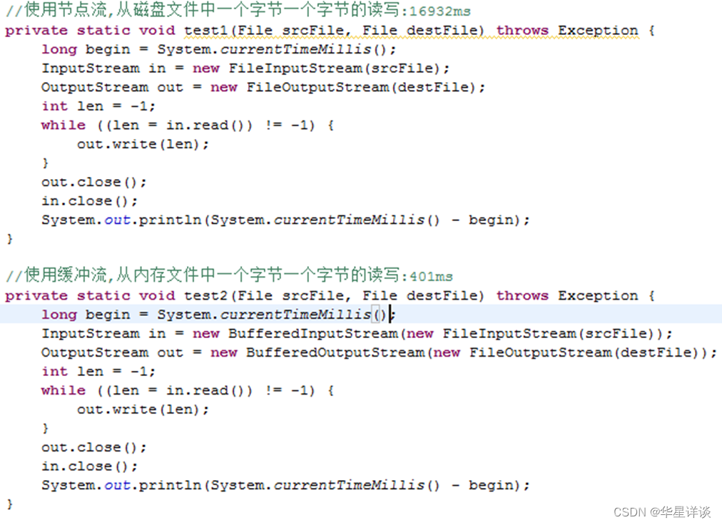 故能够得出结论:缓冲流性能比节点流性能要好一些。