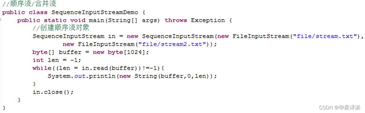 合并流/顺序流(SequenceInputStream):就是把多个输入流,合并成一个流对象。