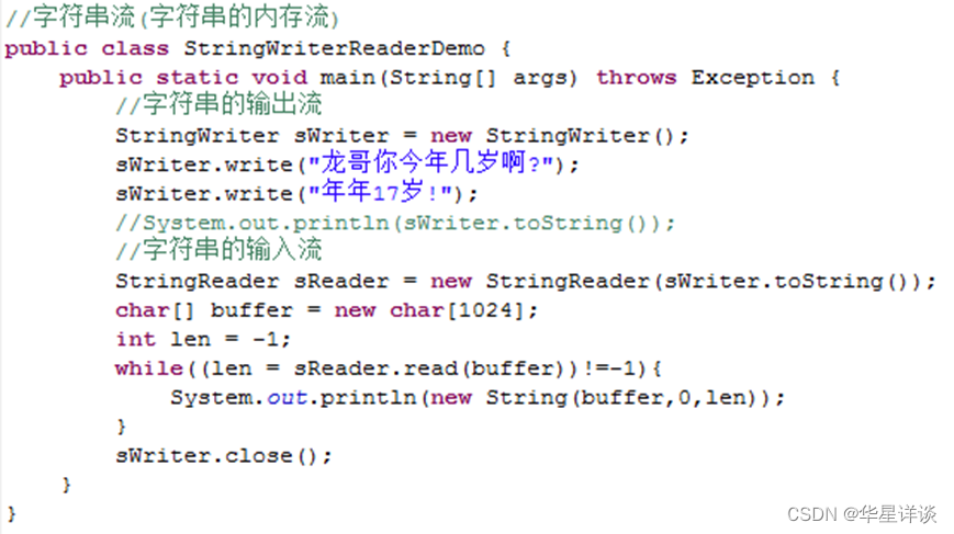 3) 字符串流:StringReader/StringWriter(把数据临时存储到字符串中)