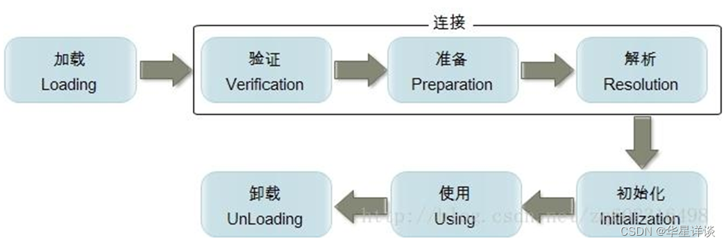 当程序主动使用到某个类时,如果该类还未被加载进内存中,则系统会通过加载、连接、初始化三个步骤来对该类进行初始化操作。
