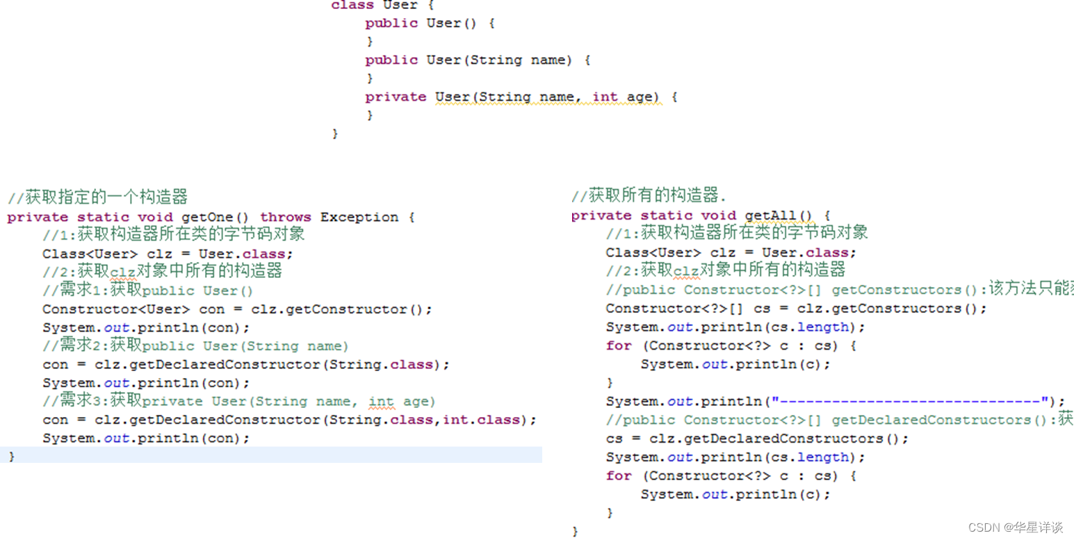 public Constructor<?>[] getDeclaredConstructors():获取当前Class所表示类的所有的构造器,和访问权限无关。