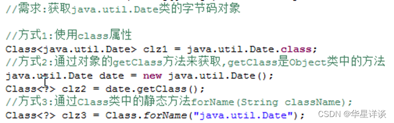 注意:同一个类在JVM中只存在一份字节码对象,也就说上述代码中claz1 == clz2 == clz3。我们一般使用最多的是第三种,其在框架中也大量使用。