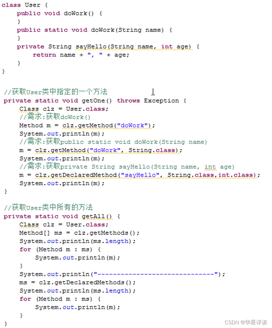 public Method[] getDeclaredMethods():获取自身类中所有的方法(不包括继承的,其和访问权限无关)