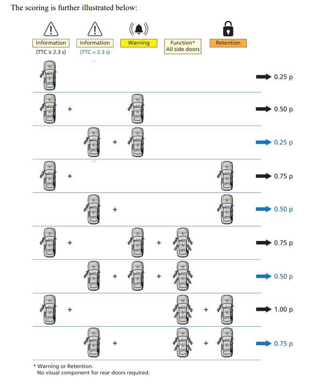 BSD功能分配在LSS中HMI评价中,LDW和BSM二选一,均为0.5分值,但HMI总分只有0.5。