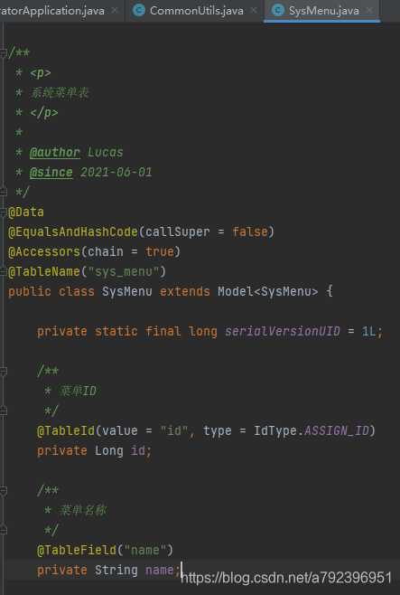 * 修改COMMON_FIELD, 指定在entity、dto中生成的字段(例如公共字段),遵循驼峰命名