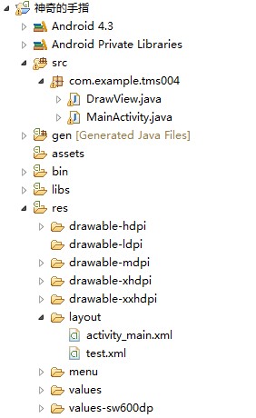 下面是在src下面的两个.java文件,第一个(DrawView.java)是自定义一个组件,也就是自己画一个圆