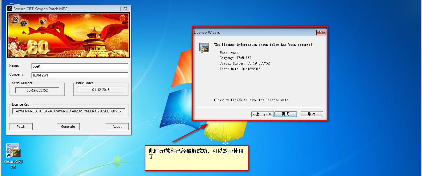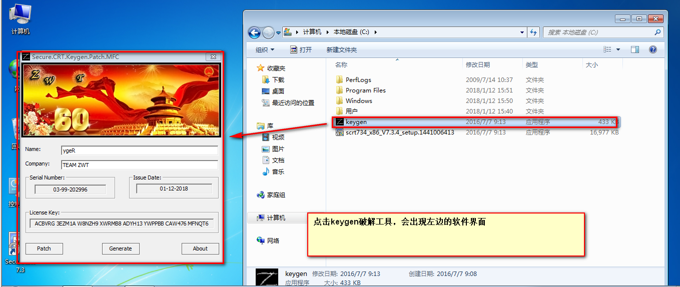 里面有32位的和64位的crt软件。看自己的电脑配置选择安装,其中keygen是破解软件,非常重要。