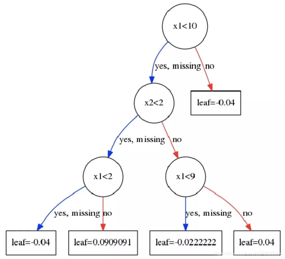 这里有的人可能对叶子结点取值感到困惑。为何我算出来的是-0.4,可图上却是-0.04?