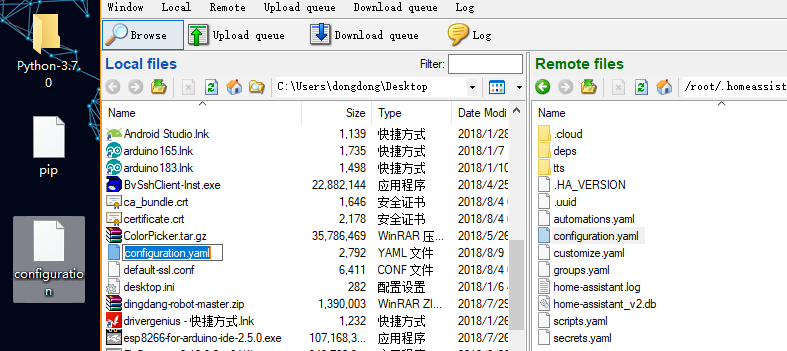 关于hass对接mqtt 请参考官网 https://www.hachina.io/docs/7083.html 1 登陆运行着hass的阿里云服务器 2 修改hass配置文件,添加mqtt服务信息 把这个文件拷贝到自己的电脑上,修改后重新上传服务器 添加以下内容 2.1hass连接Mqtt服务器 参考官网 https://www.hachina.io/docs/7211.html