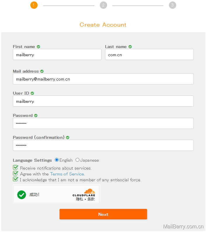 只要输入一个邮箱和密码,再验证就可以了,过程很简单