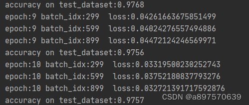 print('epoch:{} batch_idx:{} loss:{}'.format(epoch+1, batch_idx, train_loss/300))