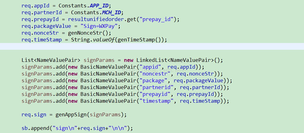 2.需要知道微信支付是需要打包才能运行。这也是蛋疼的一点,测试只能通过log和Toast来推断。掉不起来可以去微信开放平台看自己配置的参数是否正确。
