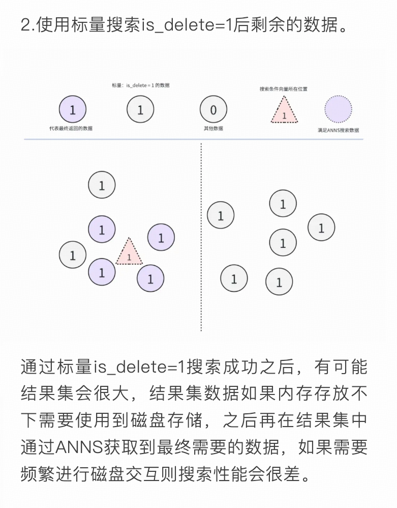 在第二步如果使用 ANNS 搜索完成之后到底是否需要使用标量索引进行搜索。 如果需要使用标量索引进行搜索那边在 ANNS 搜索后的结果集需要额外的进行索引构建,然后再进行过滤。构建构建过程其实也是需要便利结果集,那么是不是可以直接在便利的时候直接进行结果集的筛选。 那么其实在某种程度上是不是标量索引没那么好用。