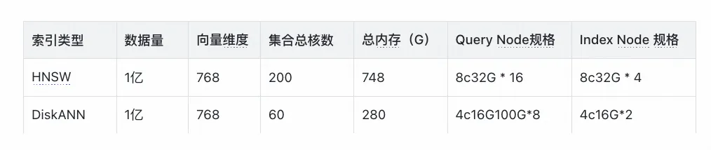 从上表格我们可以得到,HNSW 和 DiskANN 适用于不同的场景: