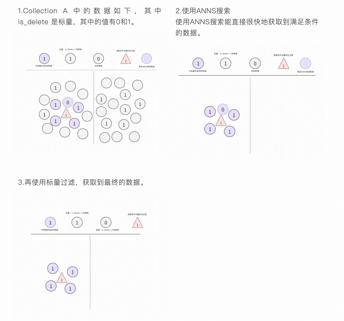通过 ANNS 搜索后再使用标量搜索,过程如下: